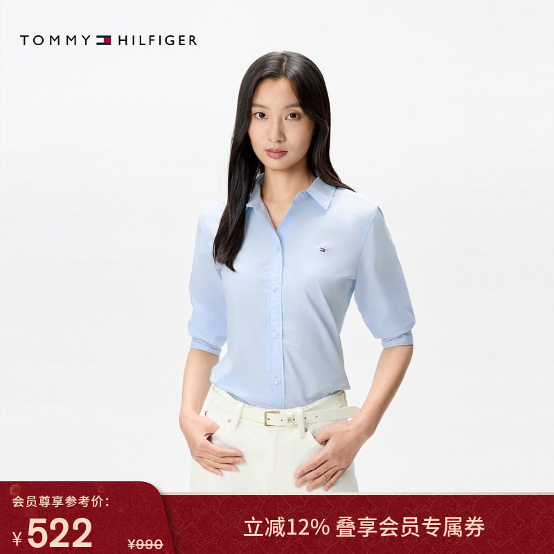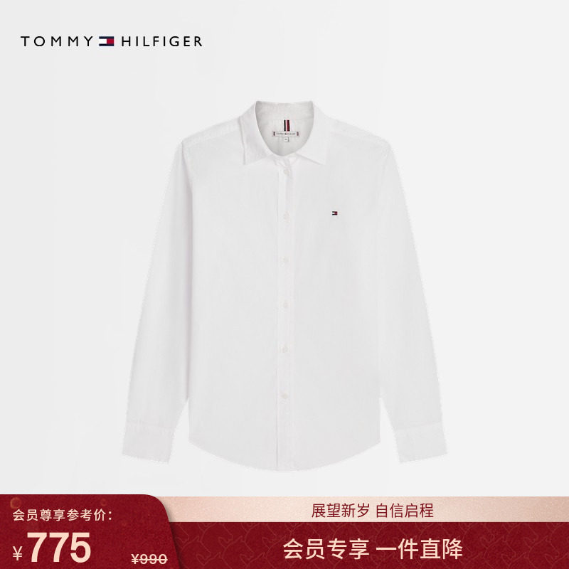 Tommy25春夏新款女装纯棉商务职场休闲绣标纯色长袖衬衣衬衫外套