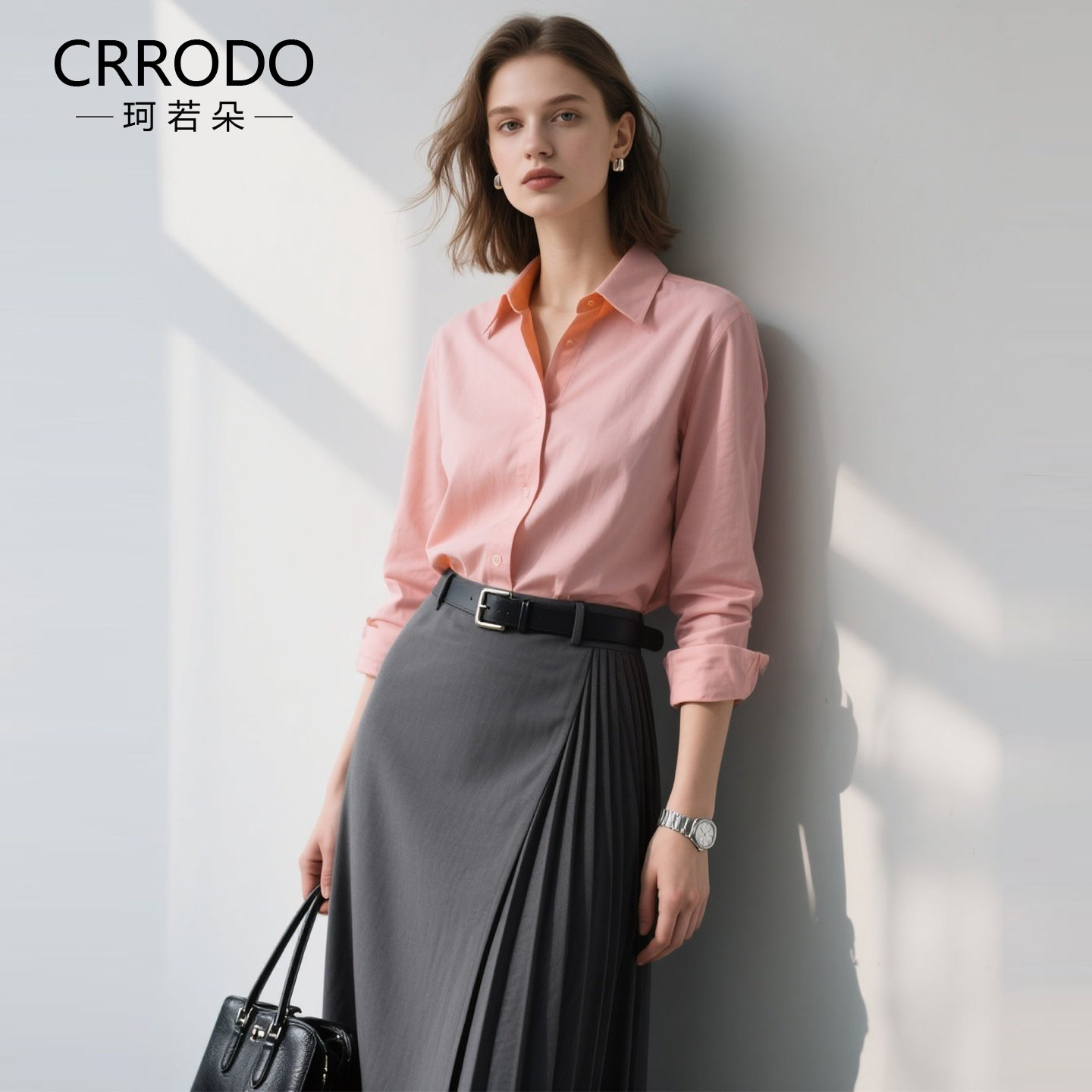 粉色纯棉衬衫女长袖2025秋季新款高级感时尚气质通勤职业商务衬衣