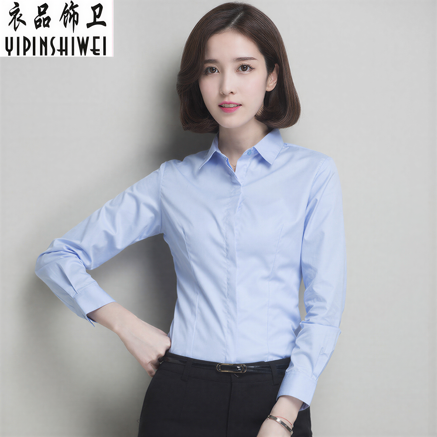 秋季职场蓝色衬衫女职业长袖衬衫商务上班正装工作女士工装衬衣女