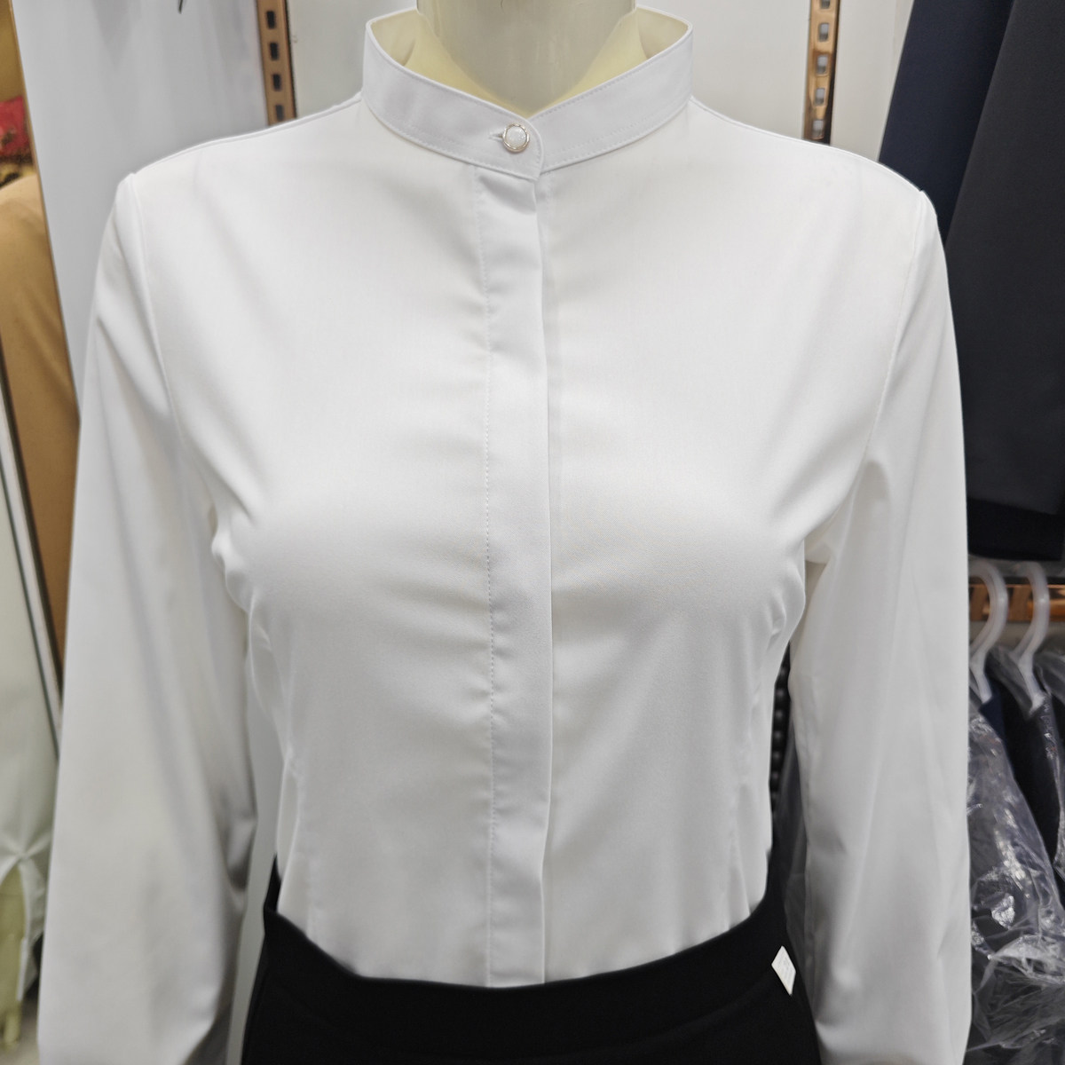 小立领职业白衬衫商务女长袖气质工作服衬衣2023秋冬装设计感小众