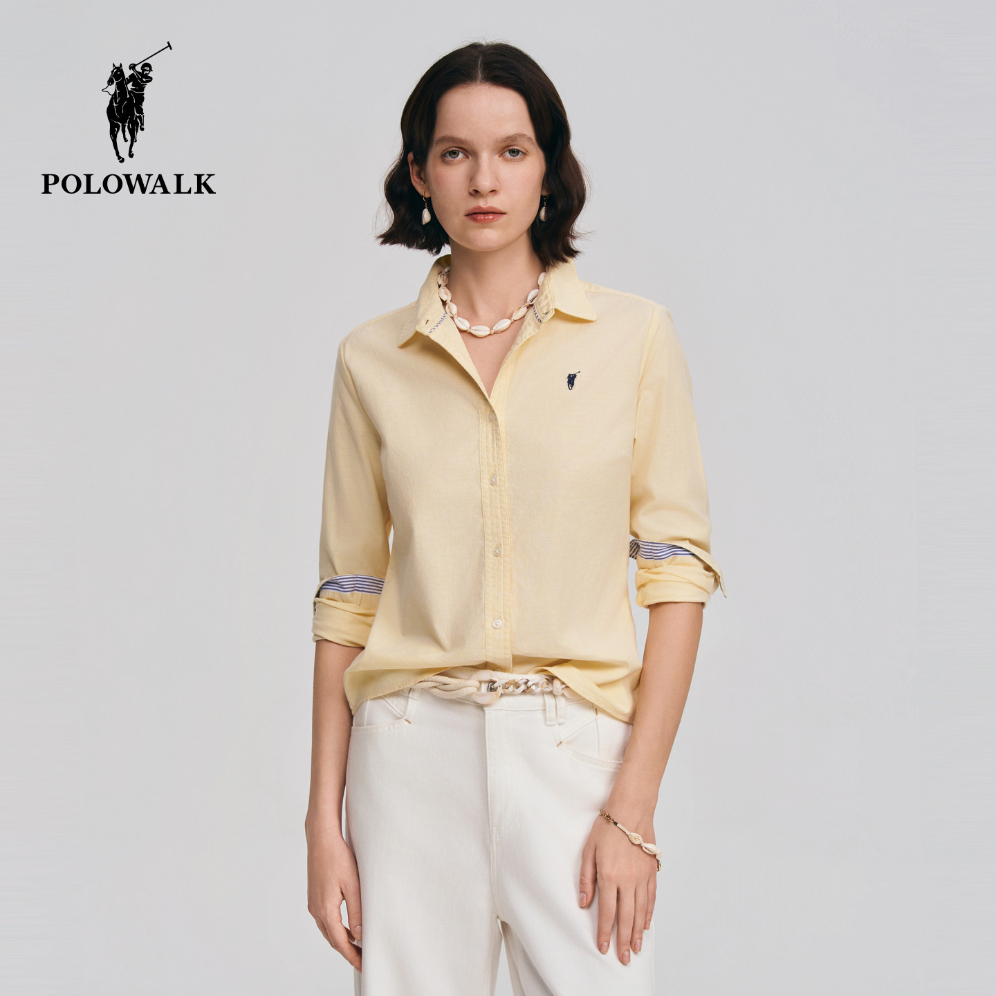 【100%纯棉】POLOWALK女式长袖衬衫2025秋季新品翻领商务上衣女装