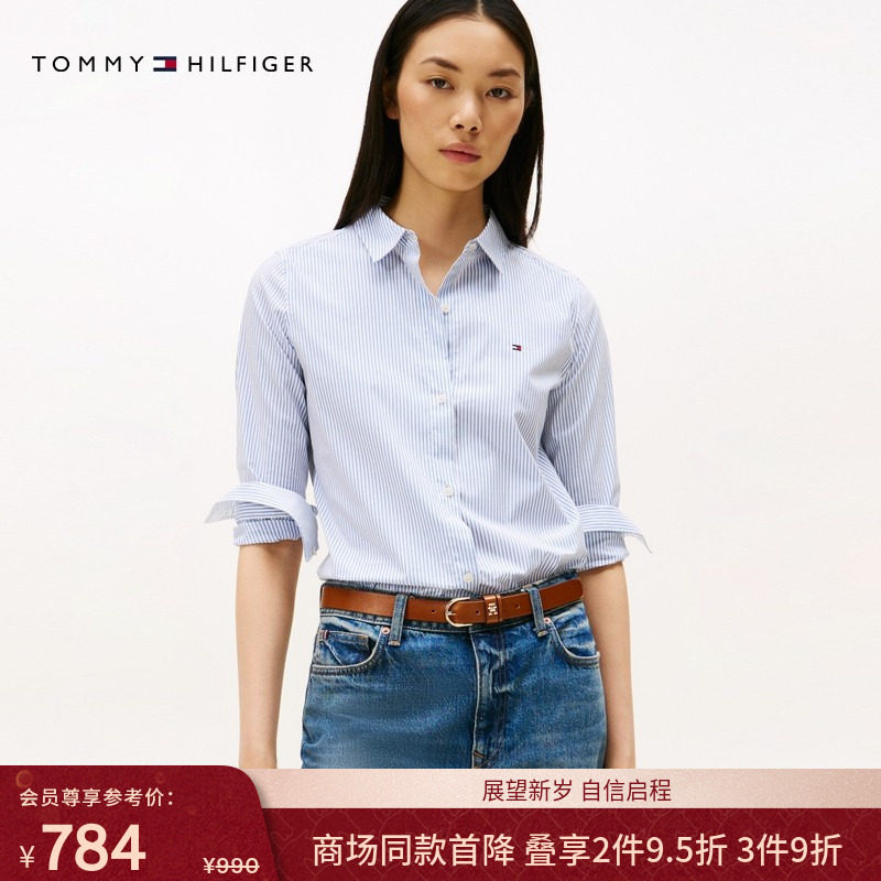 Tommy25秋冬女装府绸商务休闲通勤绣标条纹长袖衬衫外套新年礼物
