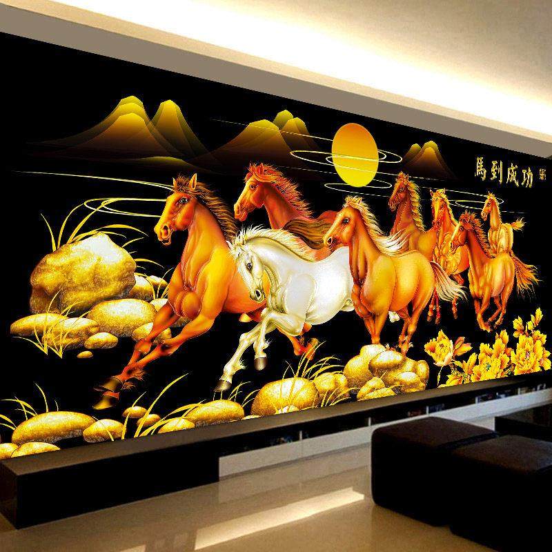5d八骏图钻石画方钻满钻马到成功八匹马点粘贴钻十字绣客厅砖石秀