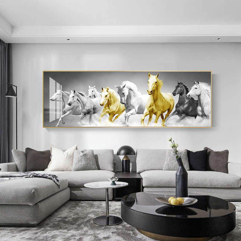 5D钻石画满钻石,立即成功,八匹马,钻石刺绣,2025年新的客厅八