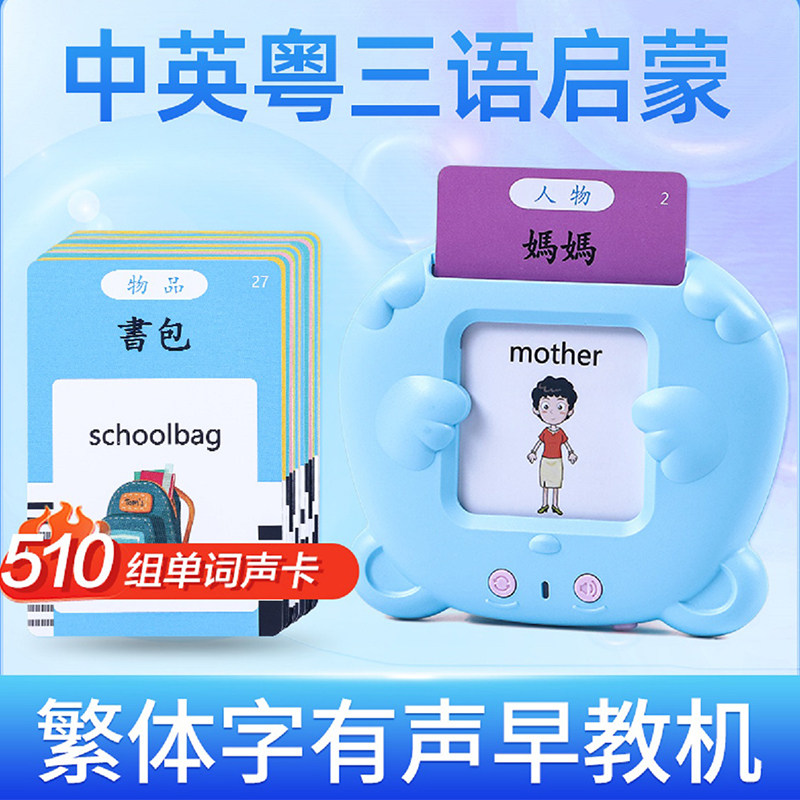 繁体字0-3岁婴幼儿童有声粤语早教认知卡片中英文看图识字广东话