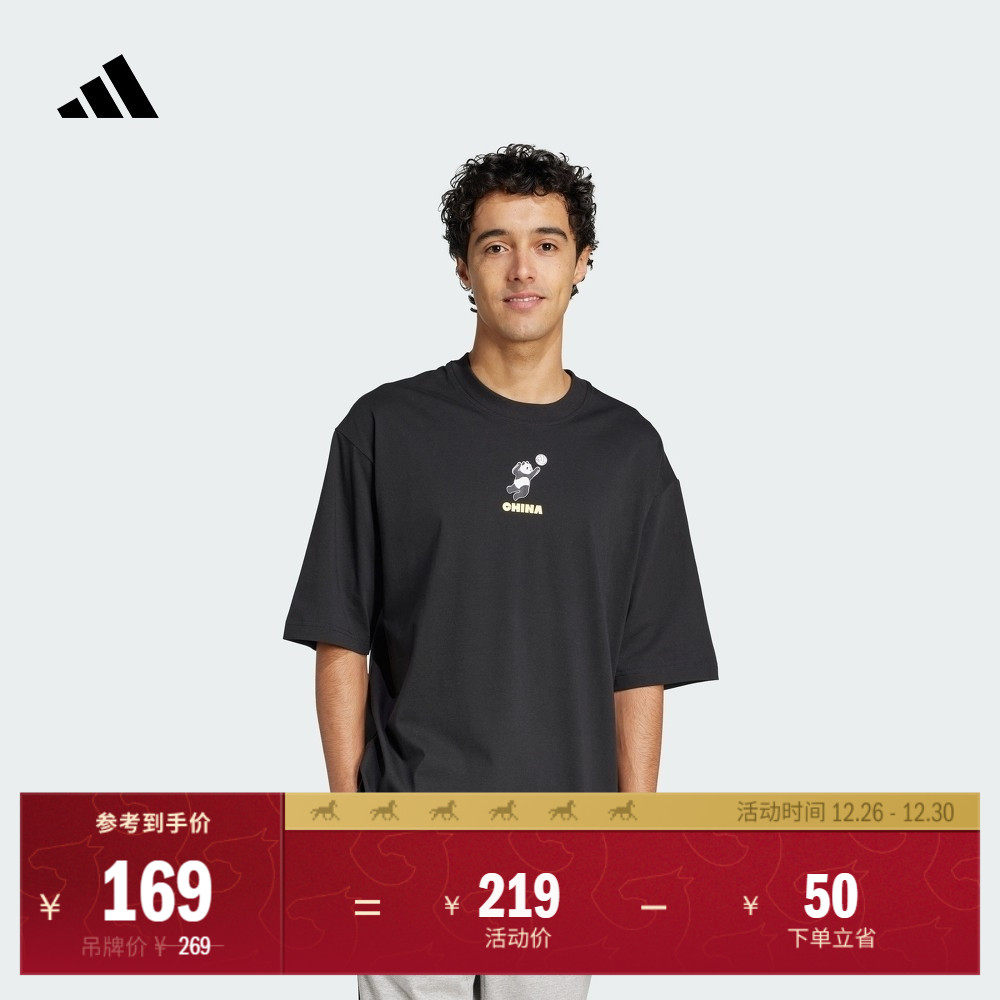 宽松印花纯棉上衣圆领短袖T恤男女夏季adidas阿迪达斯轻运动