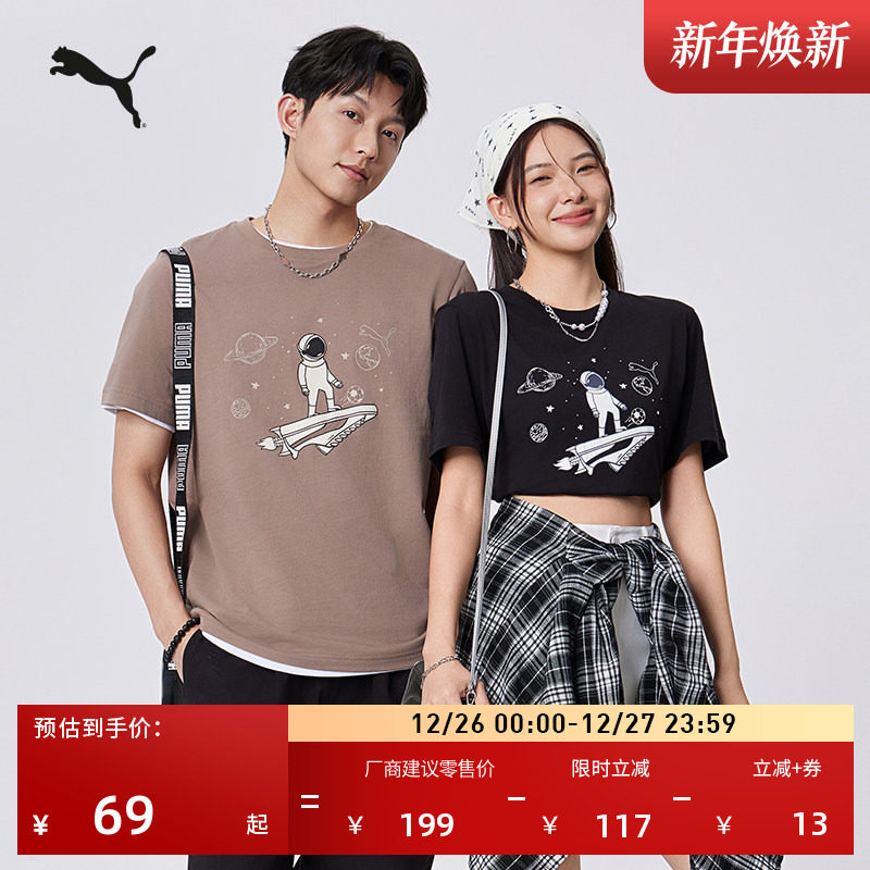 纯棉宽松印花休闲短袖T恤男女情侣PUMA彪马夏季运动上衣633788