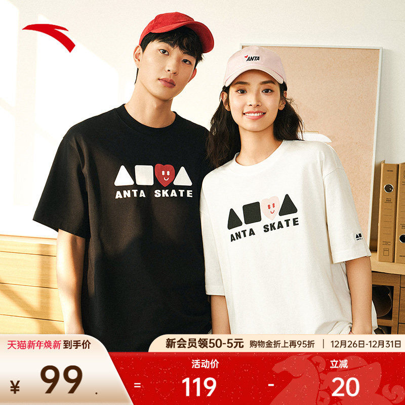 安踏情侣款宽松短袖t恤男女装2025夏季新款简约休闲上衣172528101