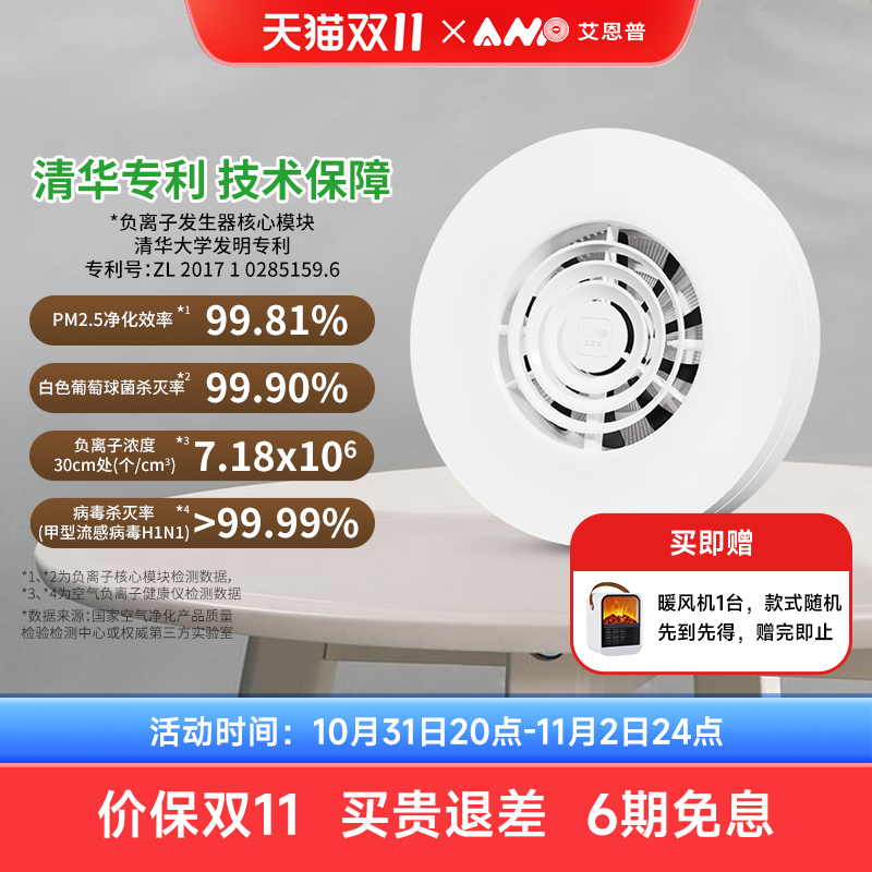 艾恩普 负离子发生器 负氧离子发生器 家用氧吧 0耗材空气净化器