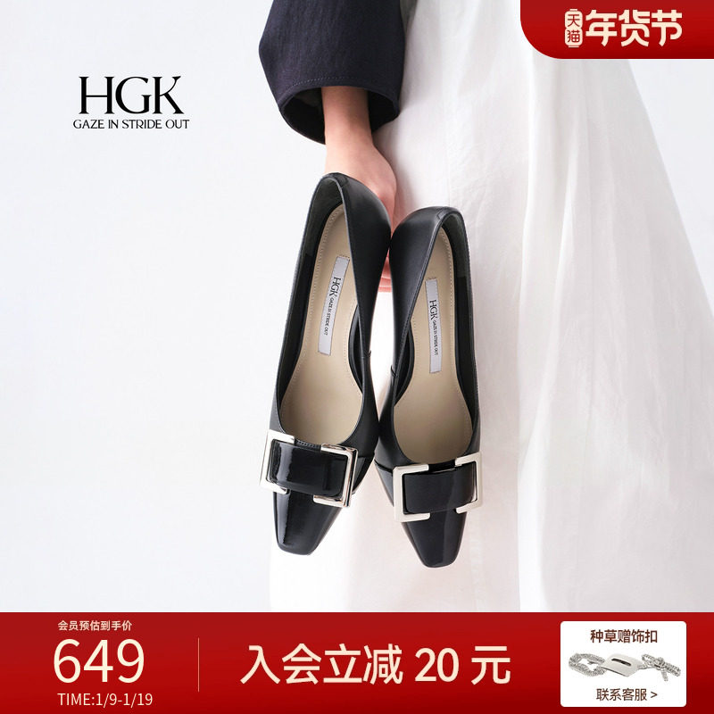 HGK摩登交响 黑色静音高跟鞋女时尚气质法式通勤方扣方头单鞋女鞋
