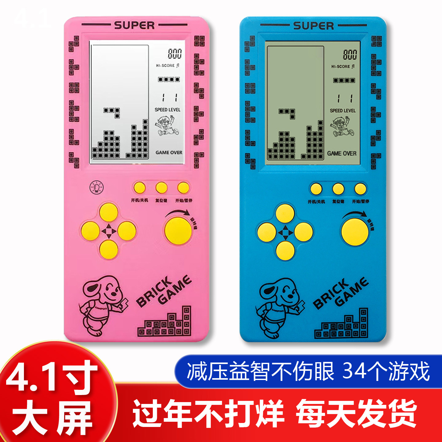 过年不打烊 4.1寸大屏俄罗斯方块游戏机 老人儿童益智玩具贪吃蛇