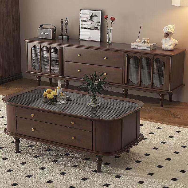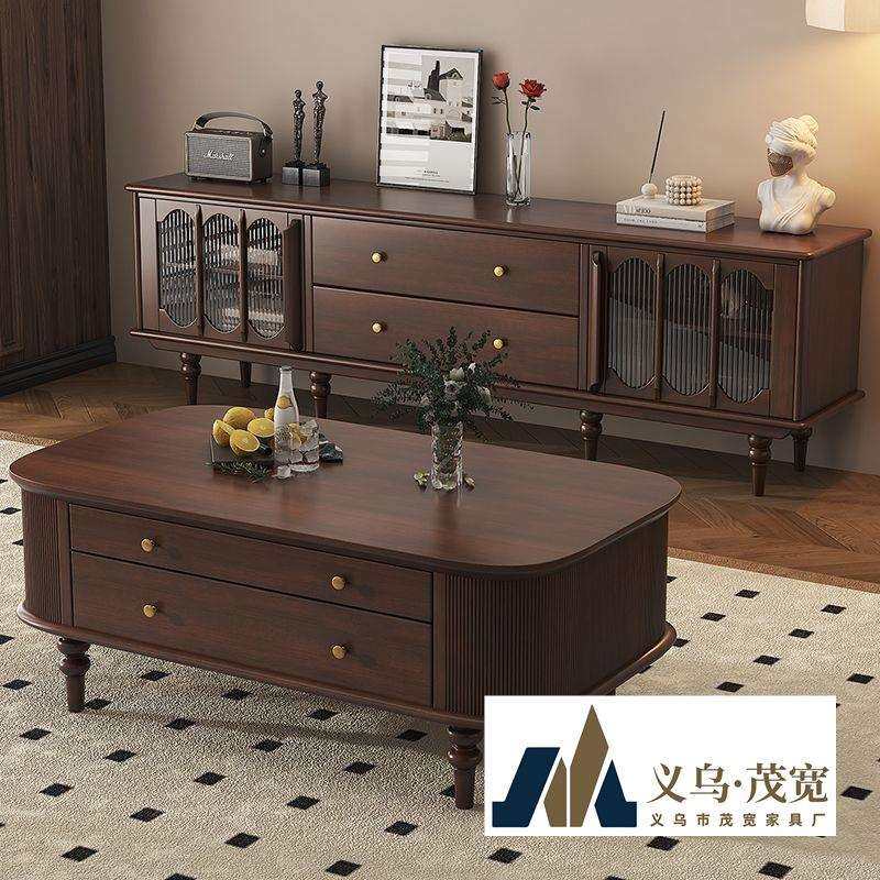 美式实木茶几电视柜组合黑胡桃色欧式复古轻奢客厅家用家具茶水桌