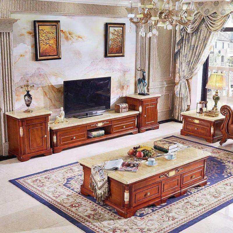 大理石电视柜欧式实木茶几电视柜角几组合客厅小户型奢华家具套装