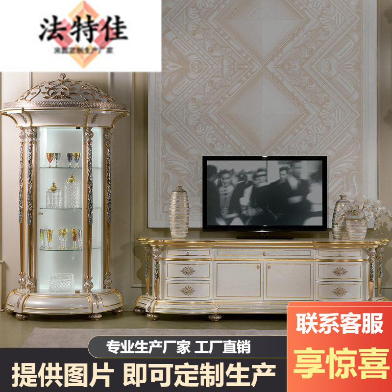 欧式电视柜茶几组合法式实手工木雕花地柜白色简约小户型客厅家具