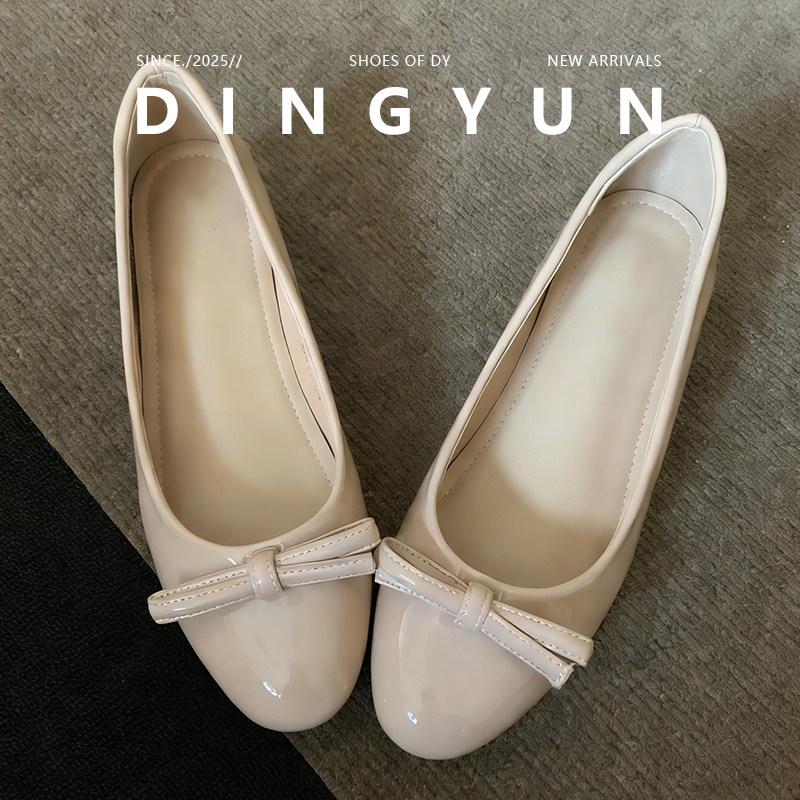 【丁允】简约日常通勤圆头漆皮浅口单鞋女内增高蝴蝶结平底鞋2026