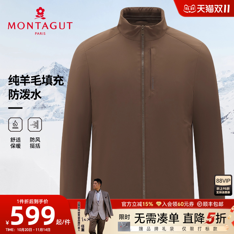 [纯羊毛填充]梦特娇男士棉服25冬季商务夹克立领外套防风防泼水C
