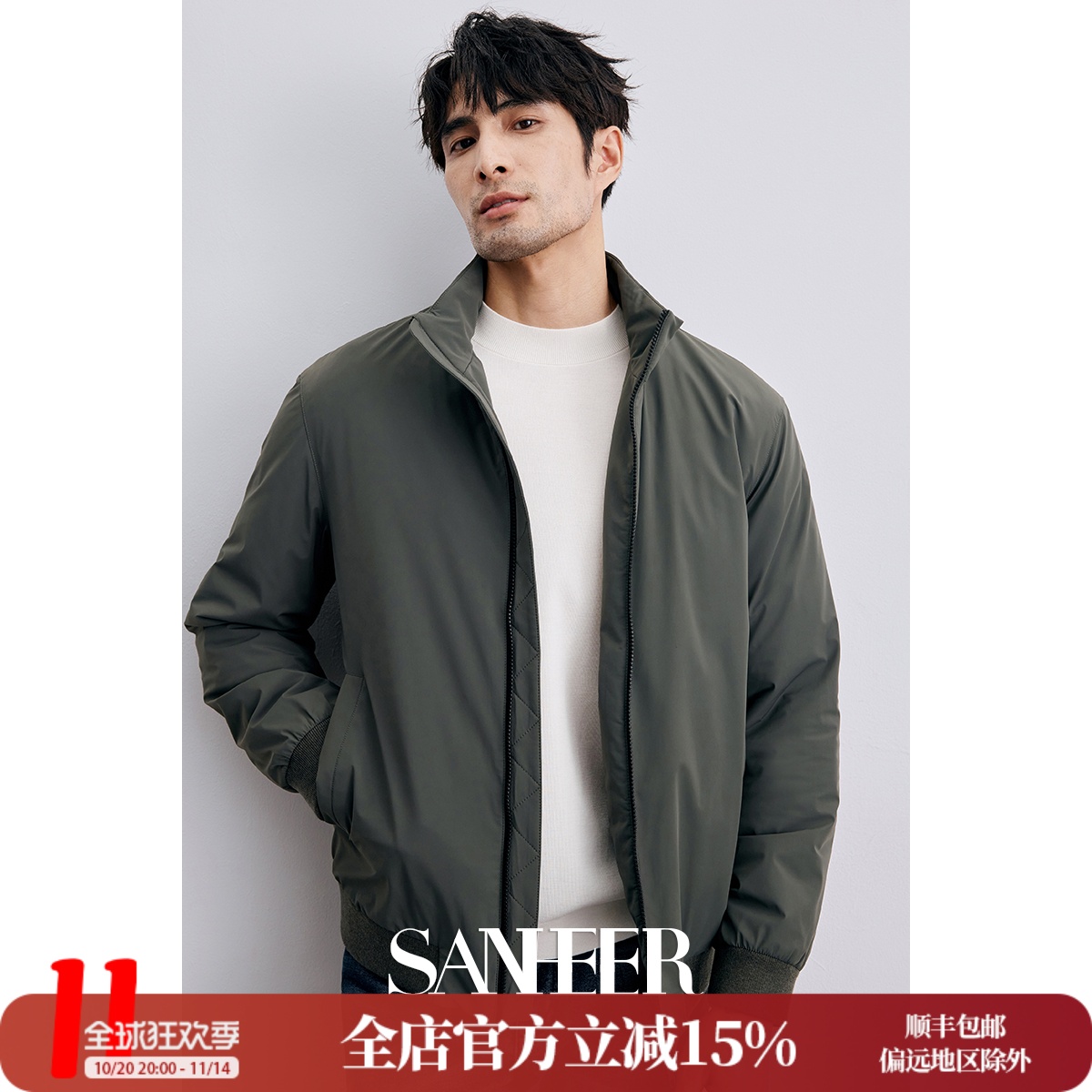 梦特娇[夹克福袋/断码专柜]春秋外套商务休闲立领男装冬棉衣棉服