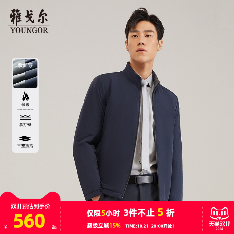 雅戈尔男士棉夹克25秋冬新款双面穿商务行政保暖立领棉衣外套男