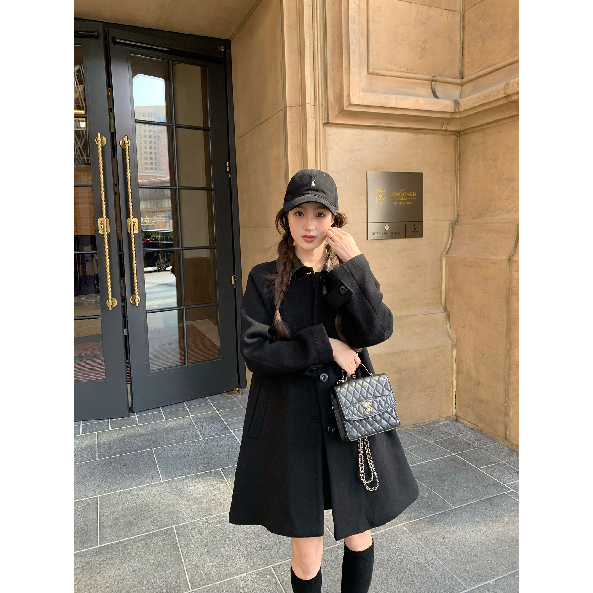 - 黑色毛呢大衣韩版