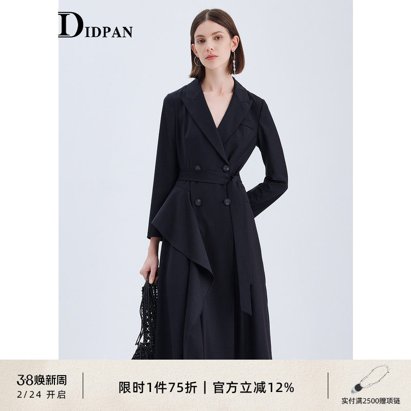 浅布调春秋新款高级感黑色显瘦宽松中长西装外套双排扣长款风衣女