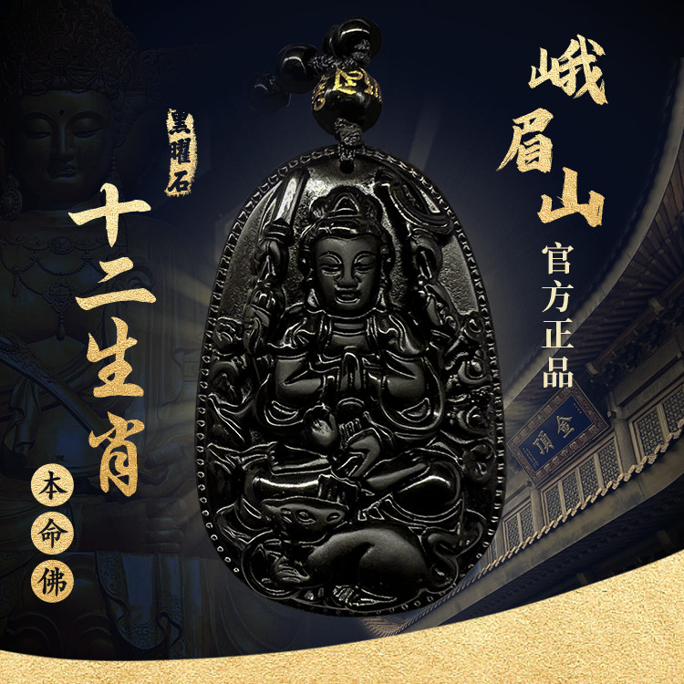 - 天然黑曜石吊坠本命佛