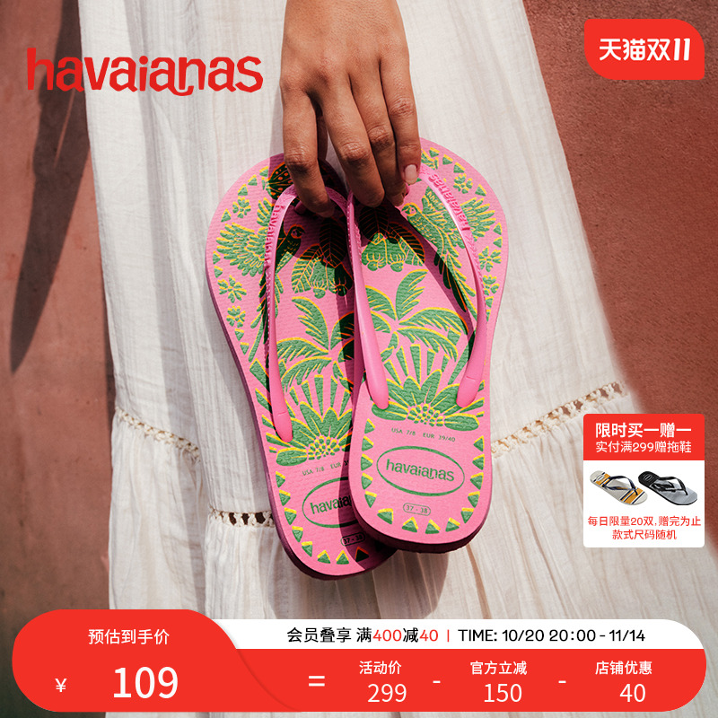 Havaianas哈唯纳SlimTucano新款印花人字拖度假外穿平底女凉拖鞋