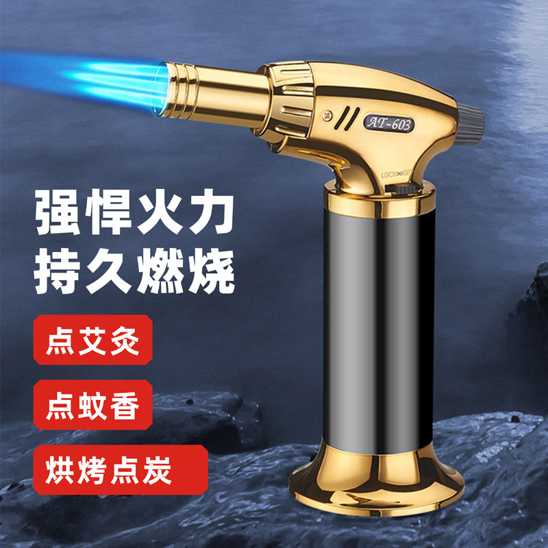 网红个性创意艾灸点香雪茄焊枪打火机金属喷枪直冲防风充气点火器