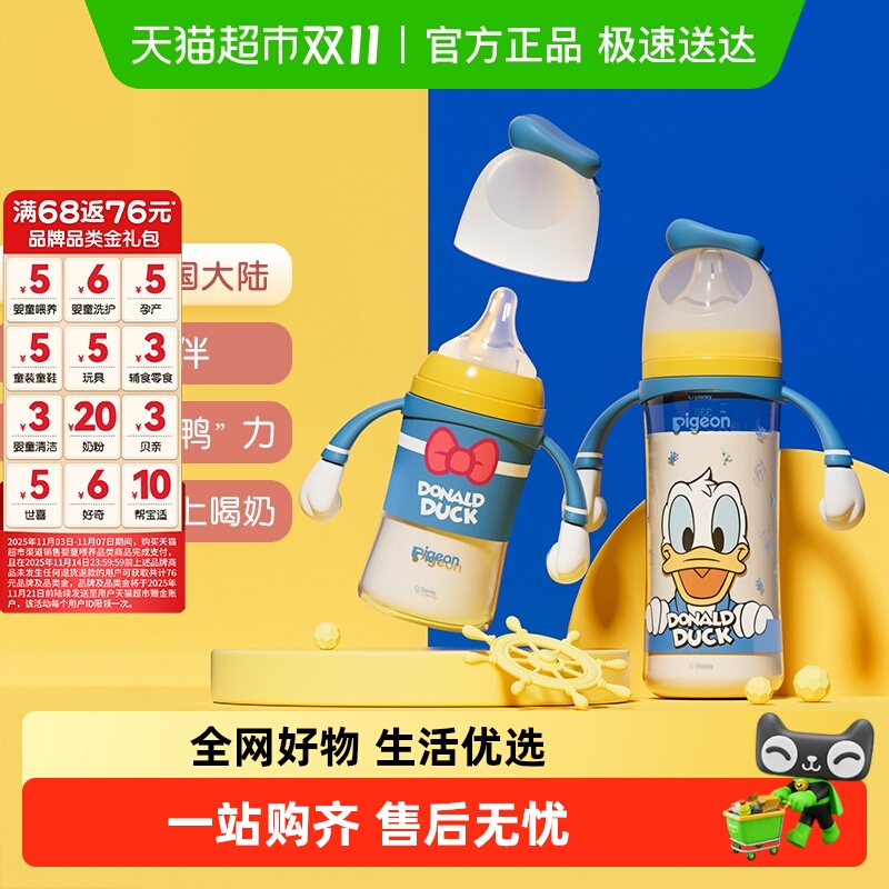 Pigeon贝亲婴儿PPSU奶瓶宽口双把手奶瓶唐老鸭联名款3-6个月+宝宝