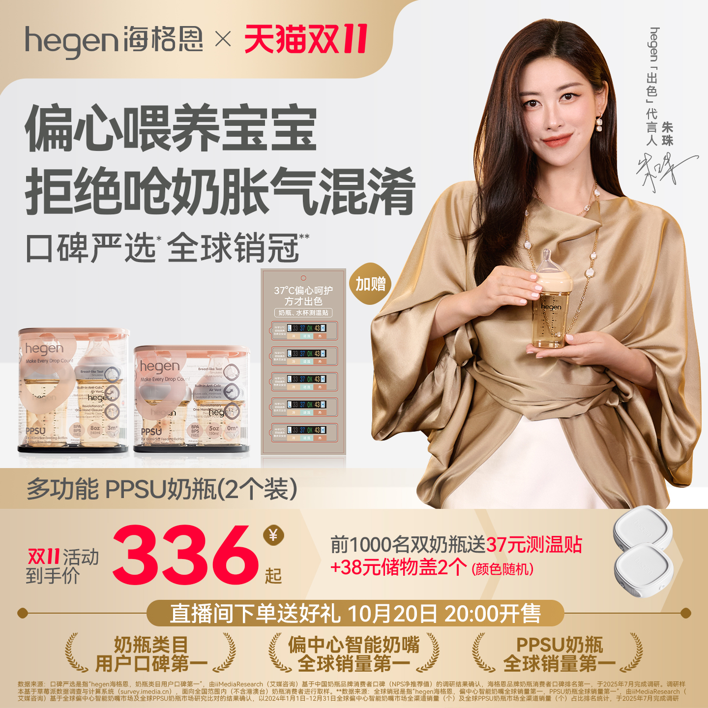 Hegen海格恩新生儿ppsu奶瓶330ml宽口径硅胶奶嘴耐摔防呛防胀气
