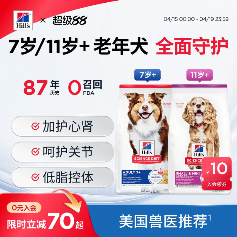 Hill's希尔思老年犬狗粮专用大龄泰迪进口希尔斯7岁以上/11岁以上