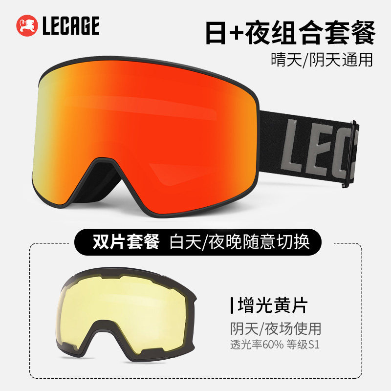 乐凯奇翻盖磁吸滑雪眼镜近视双层防雾滑雪镜护目镜变色雪镜头盔男
