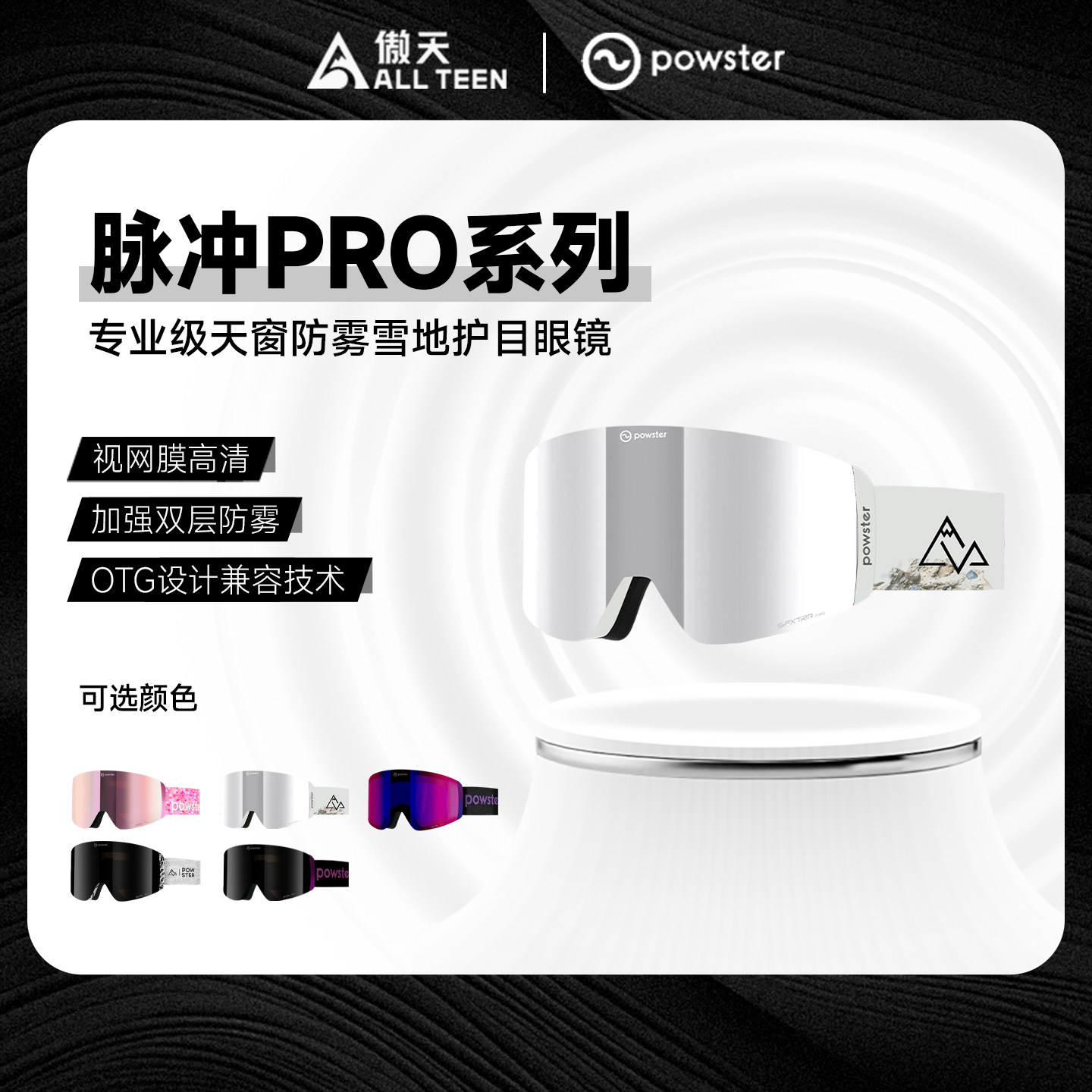 傲天极限POWSTER单双板磁吸滑雪镜脉冲PRO双层防雾透气天窗护目镜