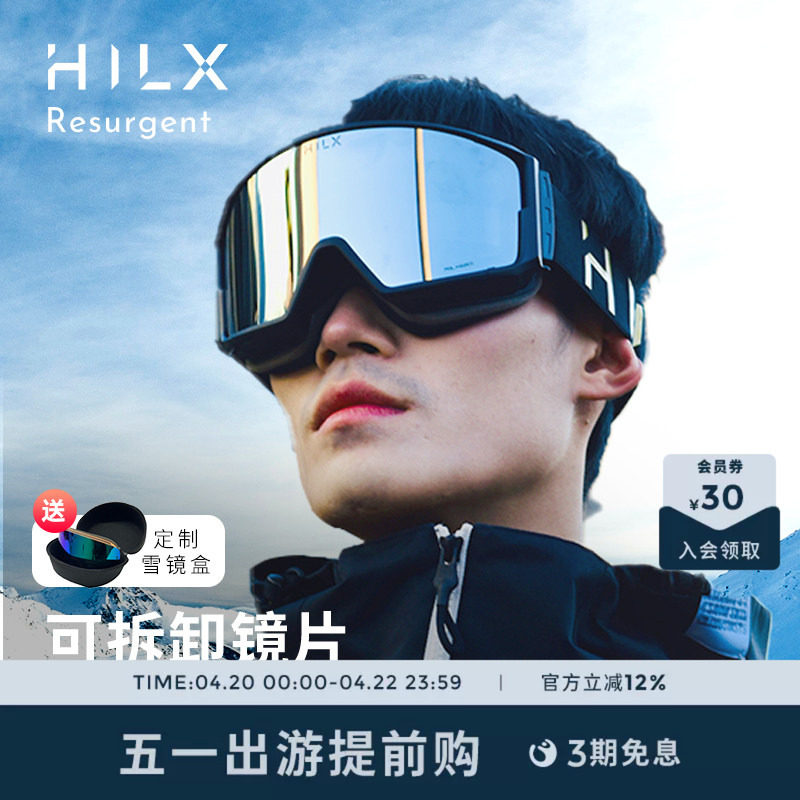 HILX 亚版雪镜宝丽来偏光双层防雾磁吸大儿童可卡近视镜男女滑雪