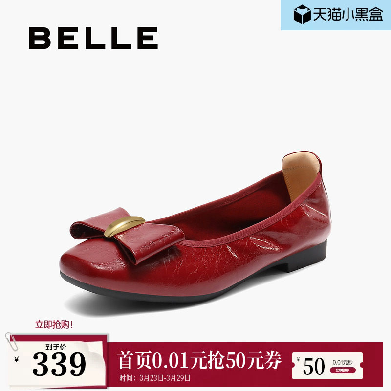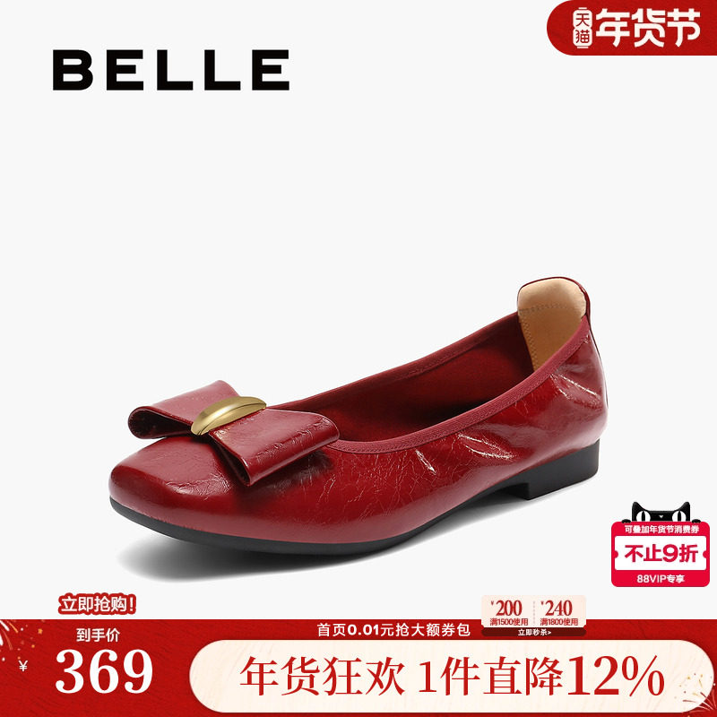 百丽软底平底单鞋女新款浅口一脚蹬红色芭蕾妈妈鞋子D8B1DAQ5