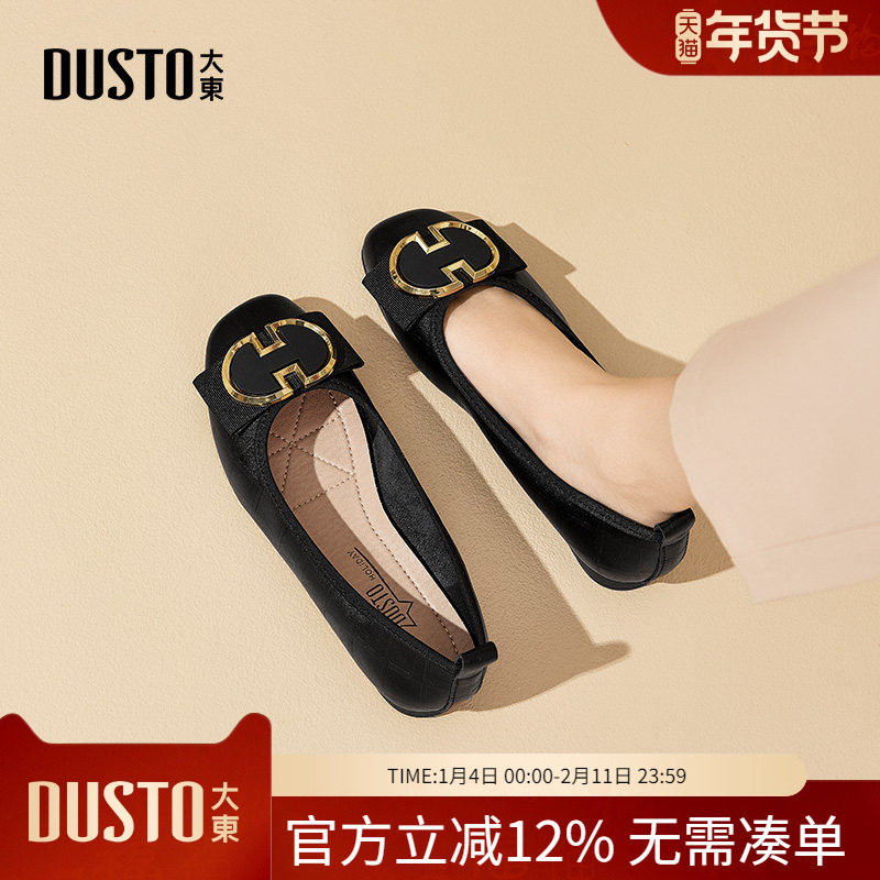 大东dd单鞋女鞋春季2026新款浅口船瓢鞋软底妈妈鞋面试黑色小皮鞋
