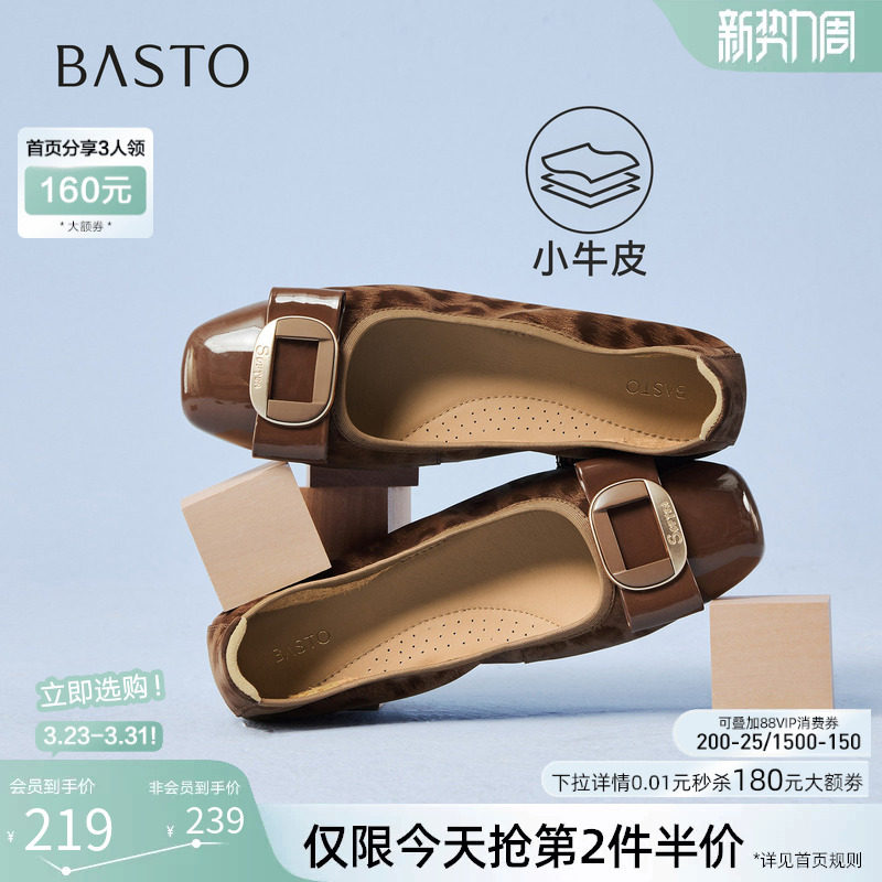 百思图2026春季新款通勤豹纹船鞋方头浅口女妈妈鞋单鞋K8013AQ6