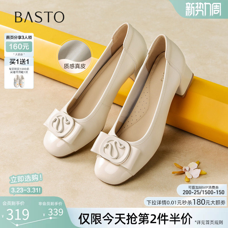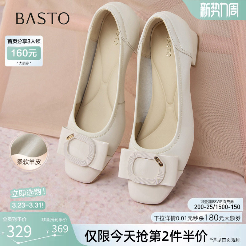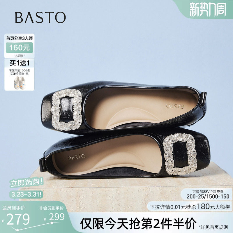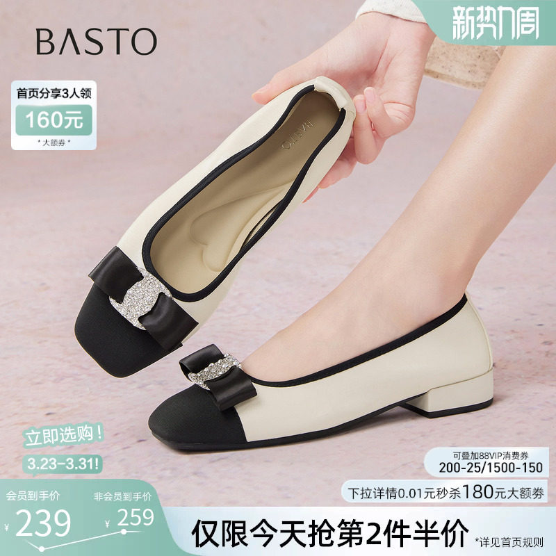 百思图2026春季新款闪钻方扣通勤浅口鞋妈妈鞋船鞋女单鞋R6162AQ6