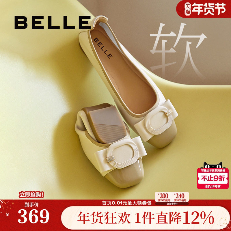 百丽平底豆豆鞋女款夏季新款女鞋子平底妈妈鞋浅口单鞋A7Z1DBM4