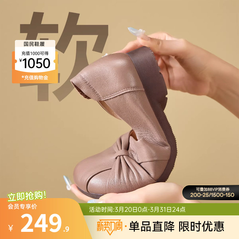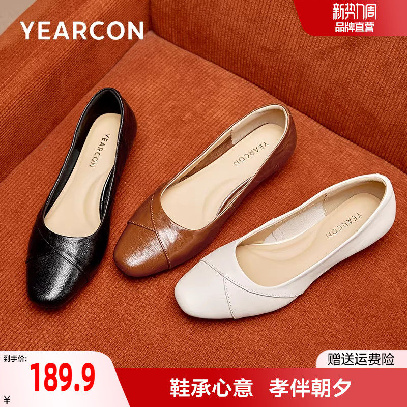 意尔康女鞋2026春季真皮浅口单鞋中老年妈妈皮鞋女士平底一脚蹬