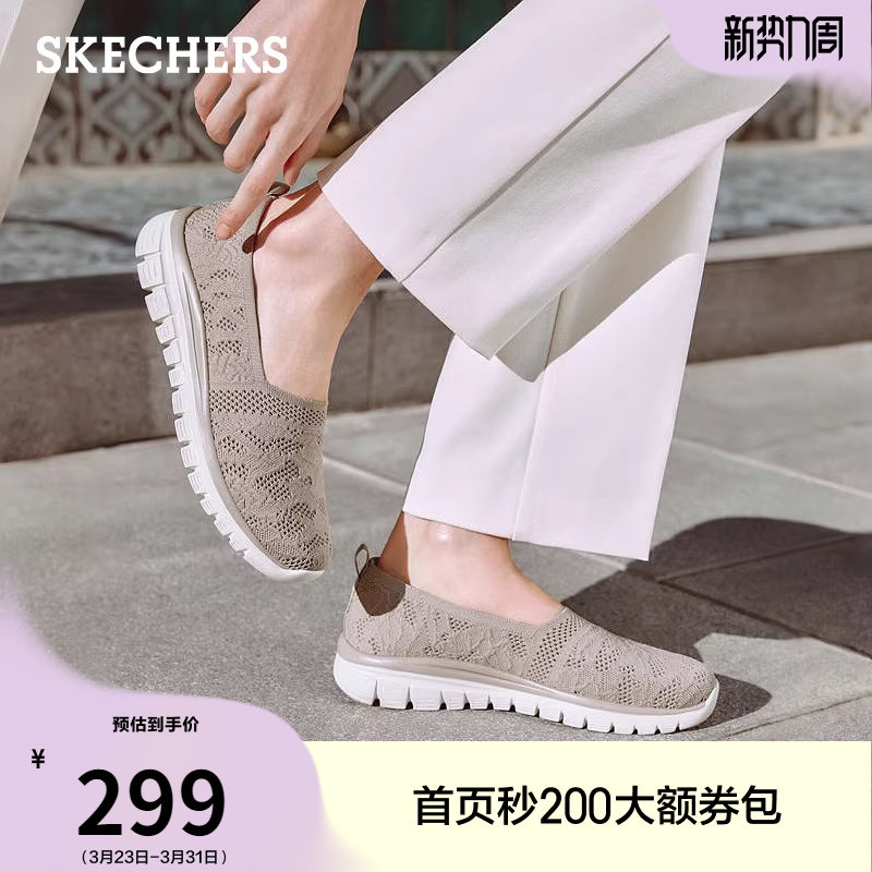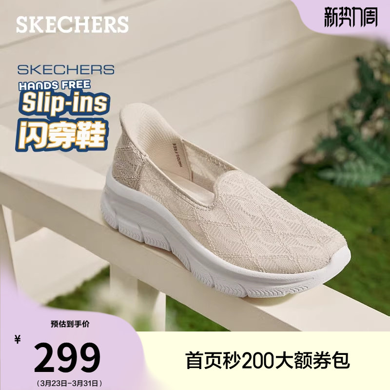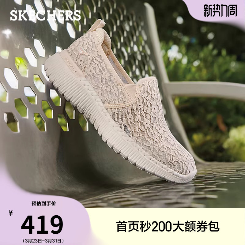 斯凯奇夏季流行女鞋健步鞋网面浅口单鞋一脚蹬轻便舒适蕾丝妈妈鞋