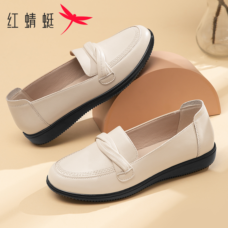 红蜻蜓女鞋春秋真皮休闲女士浅口单鞋软底软面百搭舒适中年妈妈鞋
