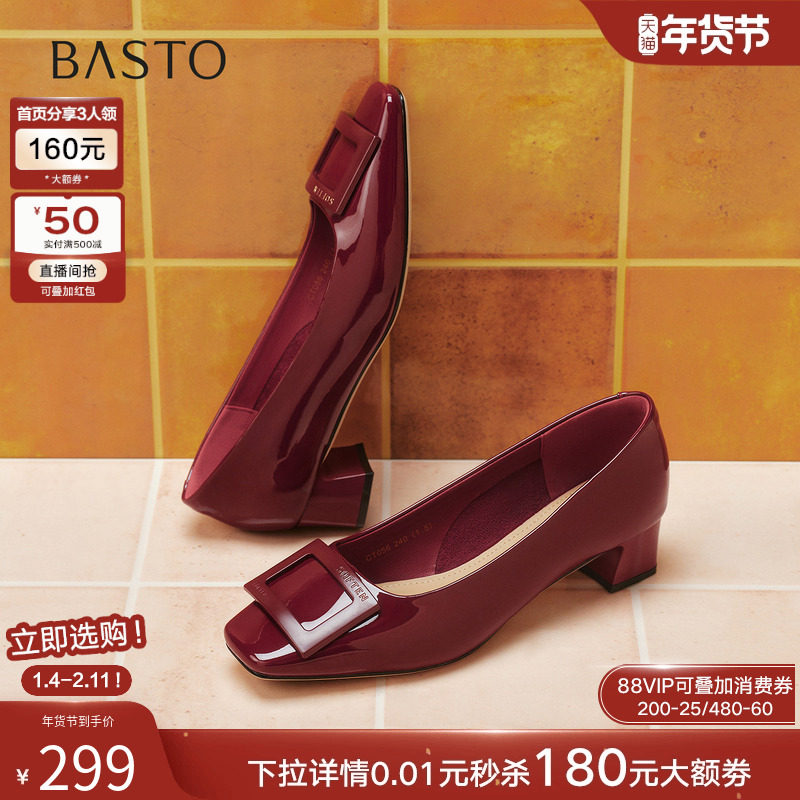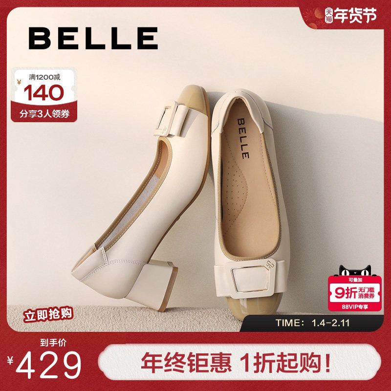 百丽粗高跟浅口单鞋女春季新款真皮不累脚妈妈上班鞋子D3S1DAQ5