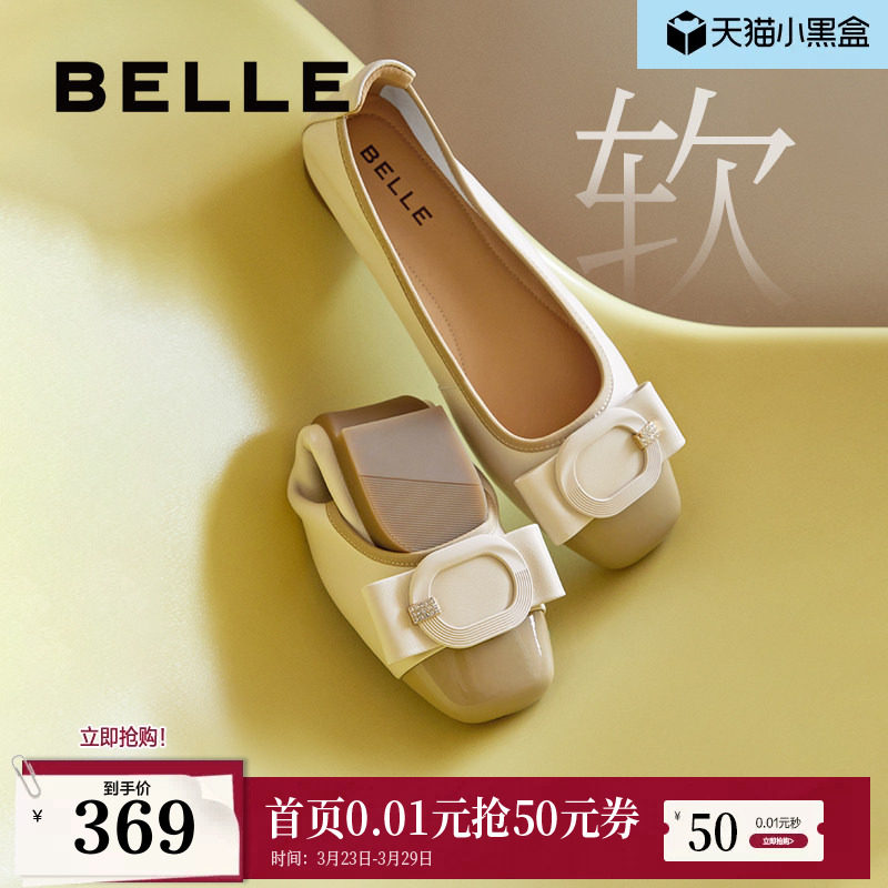 百丽女鞋子妈妈鞋新款舒适真皮平底上班不累脚浅口单鞋B7H1DCQ4预