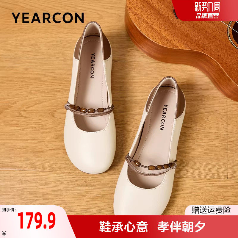 康莉羊皮真皮平底单鞋女26春季新款米色浅口通勤职业鞋软底妈妈鞋