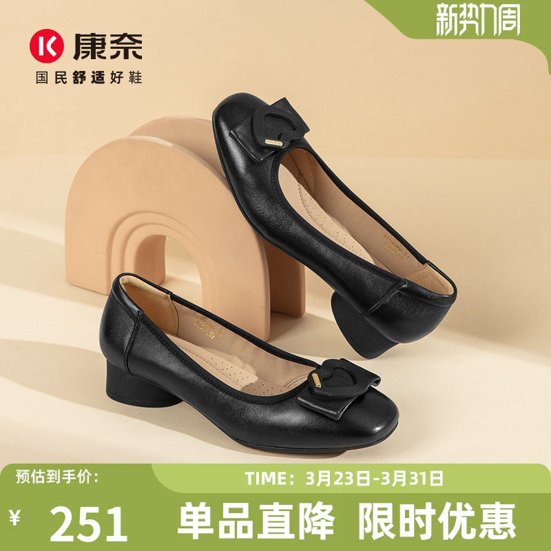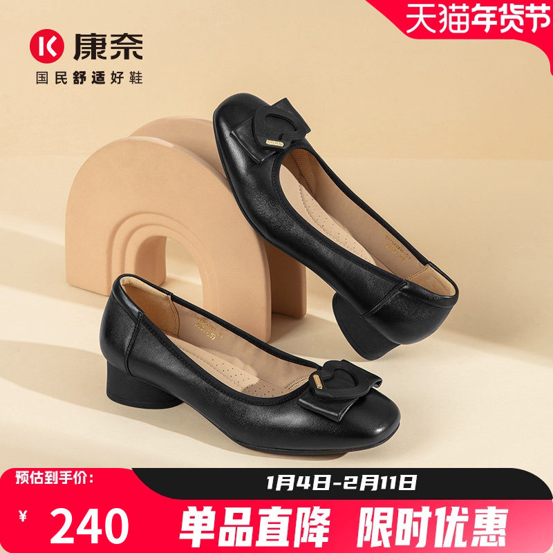 康奈羊皮女鞋2025春秋新款真皮浅口软皮工作时尚通勤妈妈单鞋低跟
