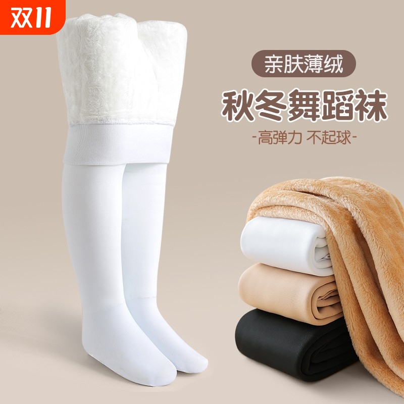 儿童舞蹈袜秋冬季芭蕾舞打底裤女童白色加绒加厚跳舞连裤袜练功袜