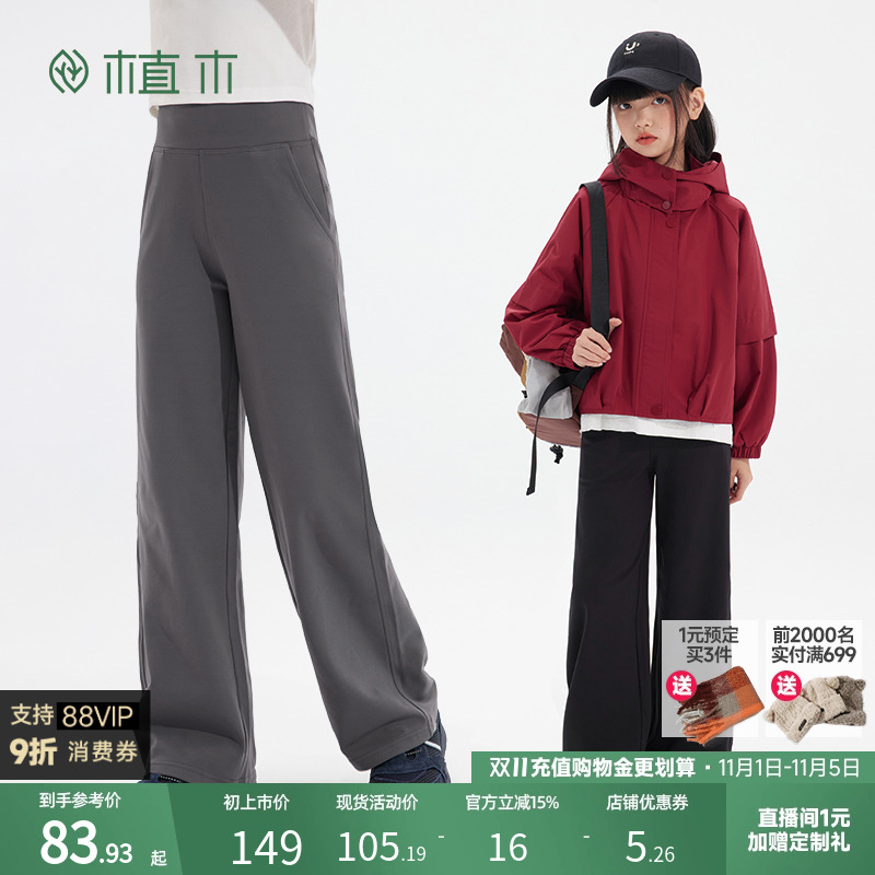 植木童装儿童裤子2025秋冬新款中大童直筒瑜伽裤打底裤女童裤子