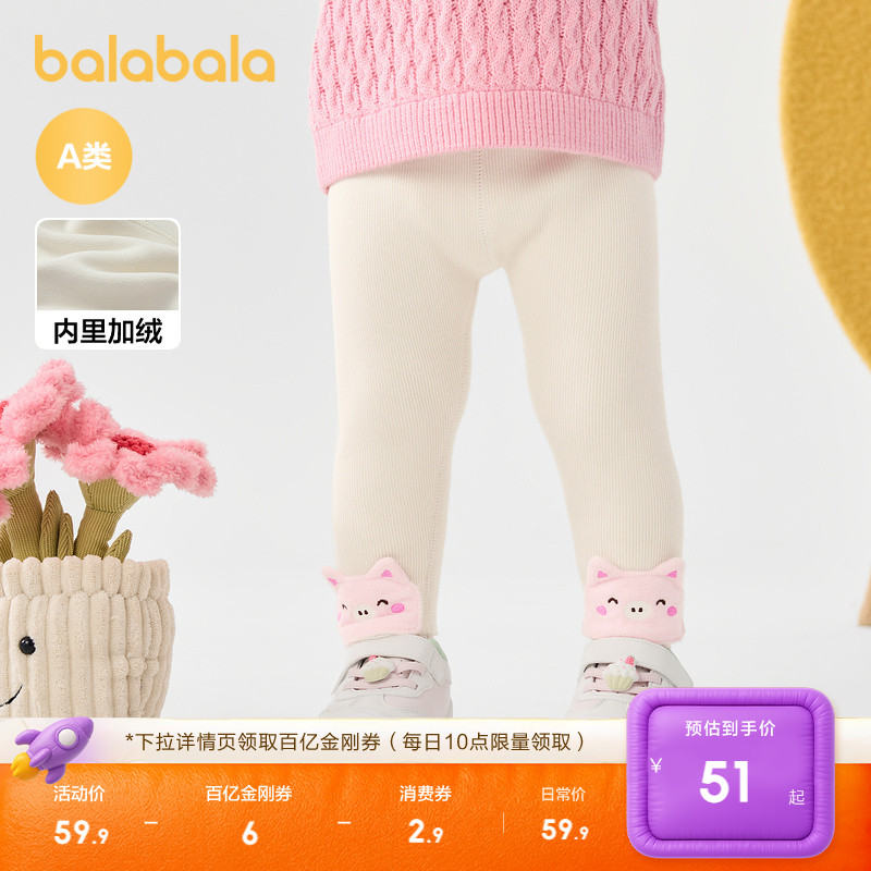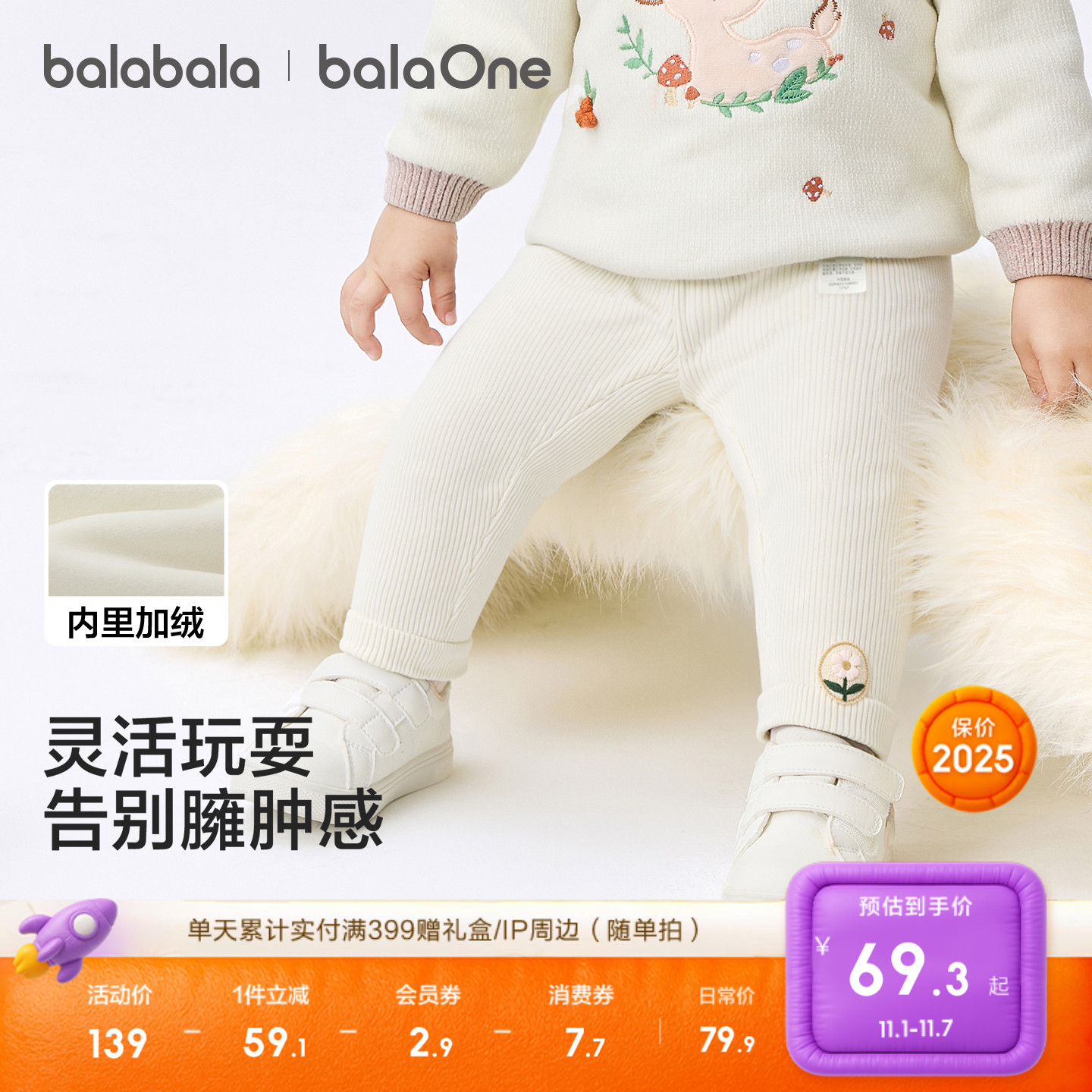巴拉巴拉婴儿长裤加绒打底裤女童宝宝裤子秋冬装保暖2025新款百搭