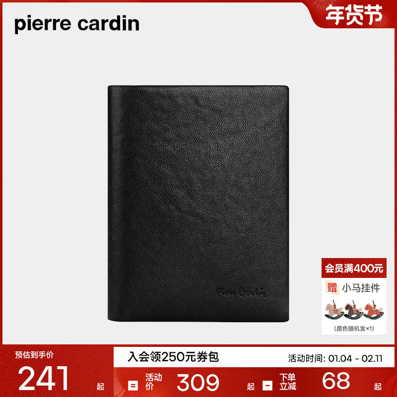 【真皮】皮尔卡丹竖版男士钱包短款卡包简约男式钱夹牛皮男生皮夹
