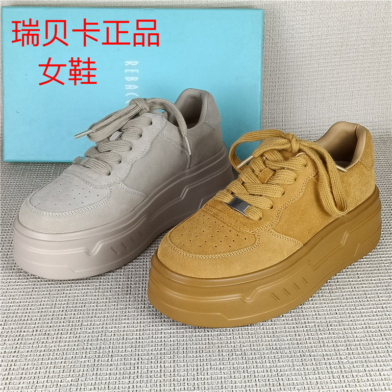 瑞贝卡专柜撤柜断码处理真皮女鞋百搭厚底松糕底增高系带休闲单鞋